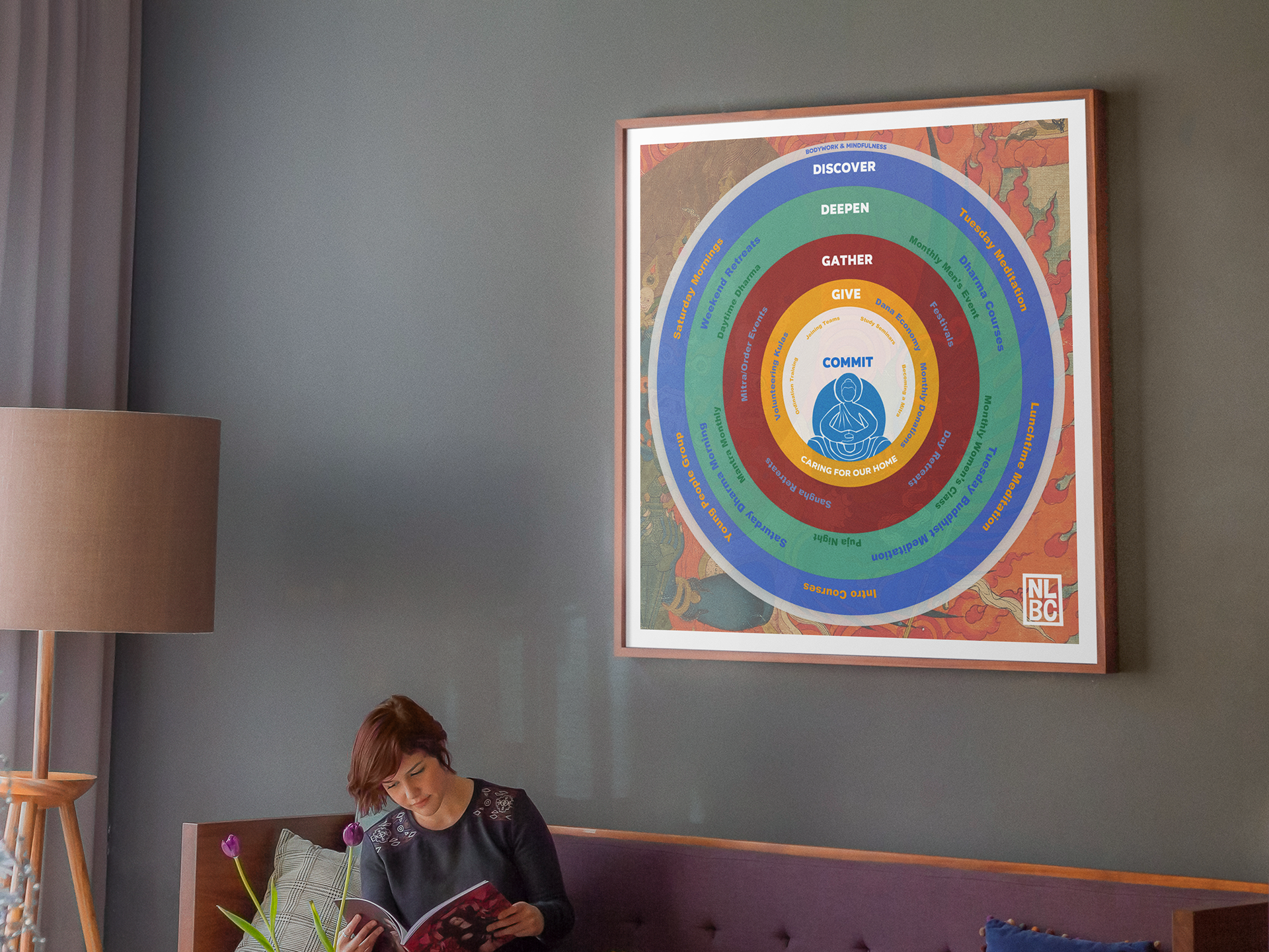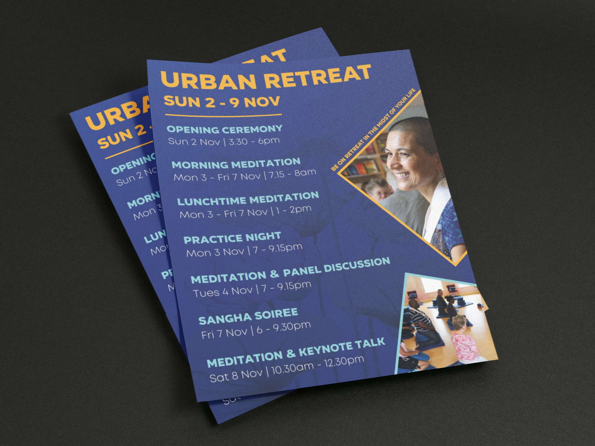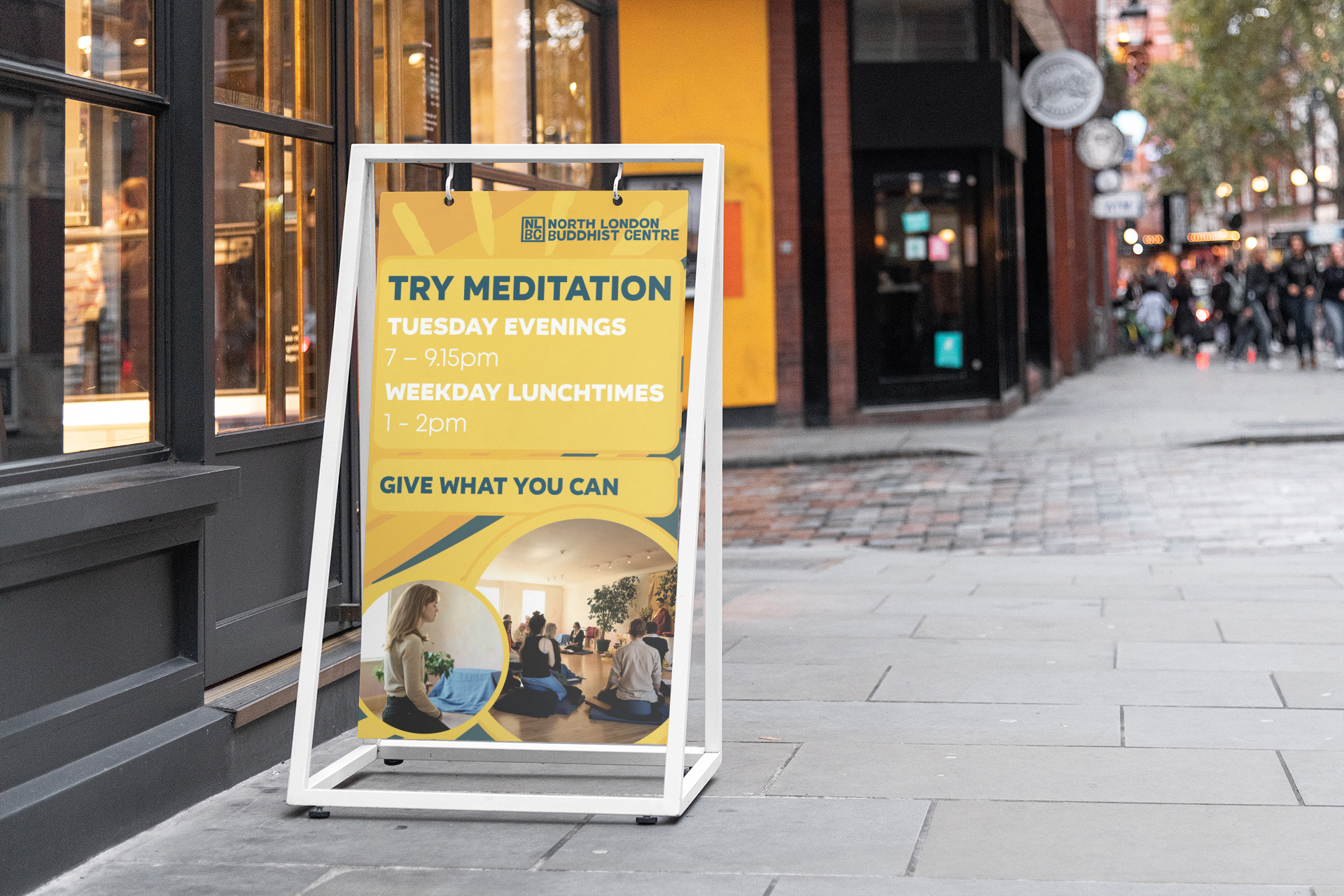 For my work with the North London Buddhist Centre, the central challenge was to preserve their established aesthetic while elevating it with more complexity, nuance, and clarity. The Centre already had a recognizable visual identity rooted in playfulness, warmth, and community friendliness, but their materials needed a refreshed energy that could engage new audiences while remaining true to their ethos. My approach was to refine and expand their design system—introducing layered compositions, dynamic color palettes, and thoughtful typography that brought greater depth without overwhelming their approachable brand presence. Below you will see a mix of older elements from their past brand identity, the current ones I have implemented, and my suggestions for future design improvements, all working together to create a more cohesive and sophisticated visual language.