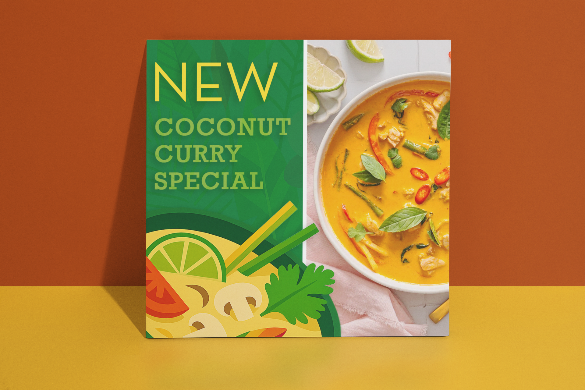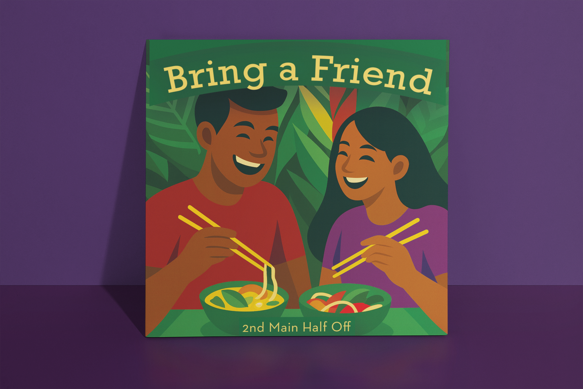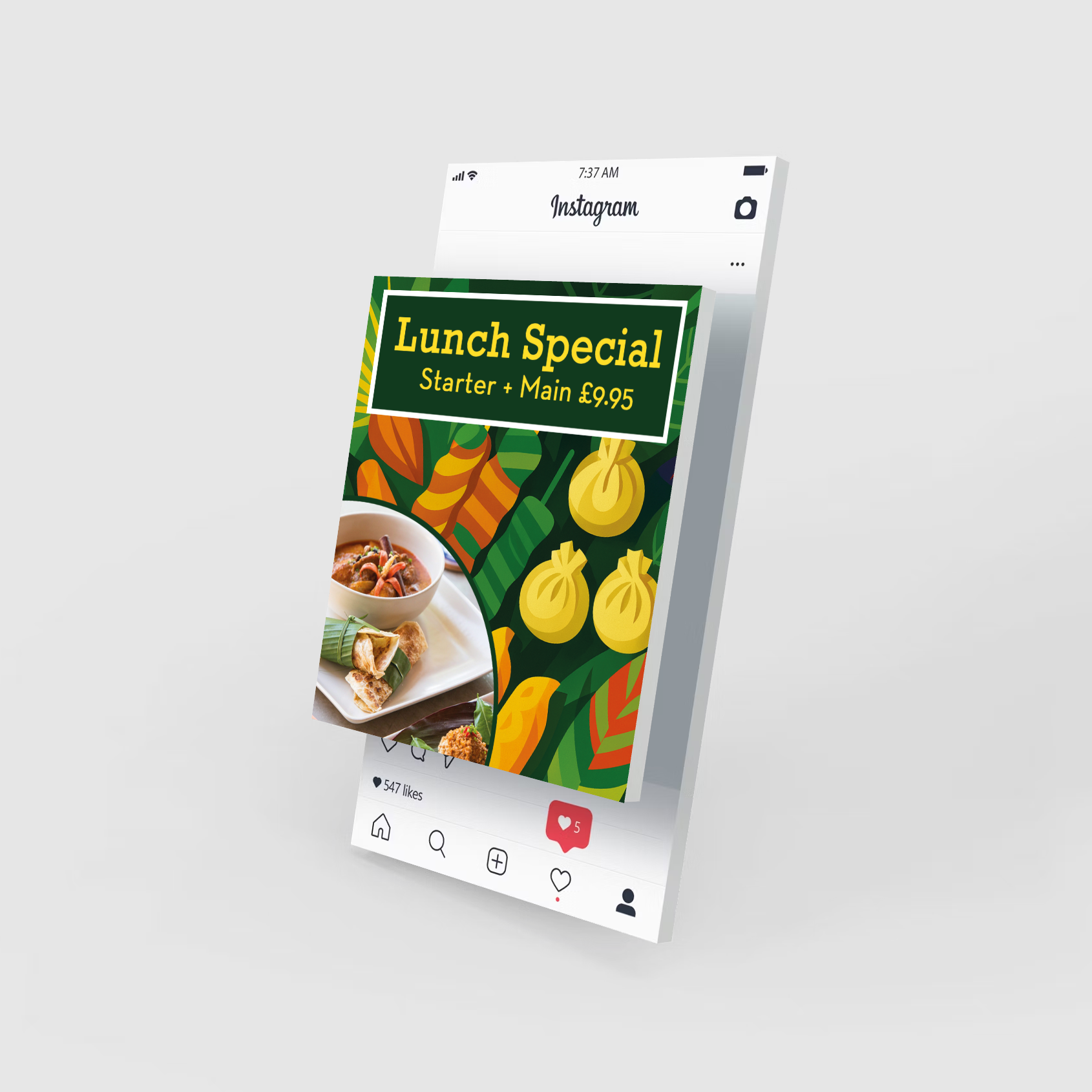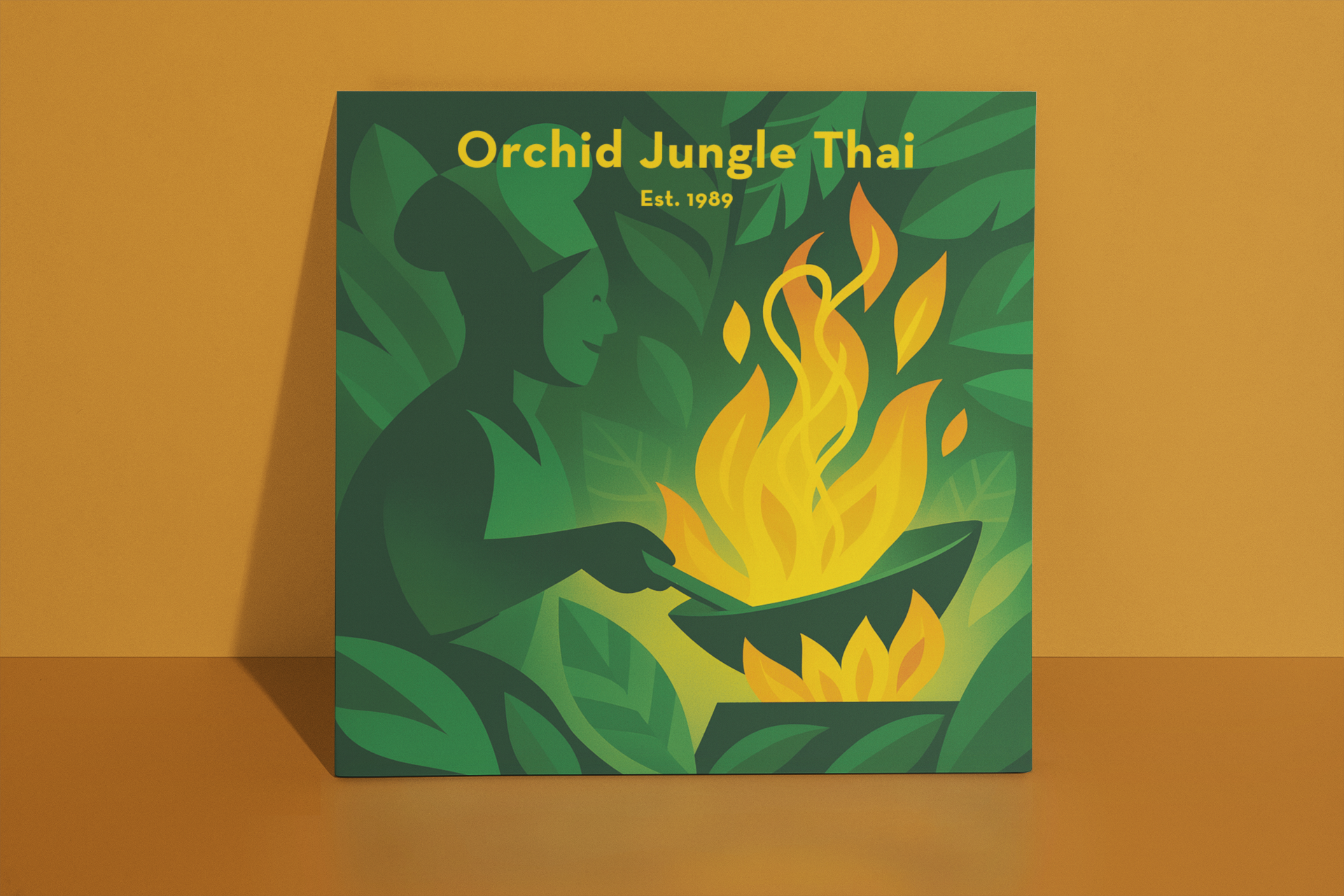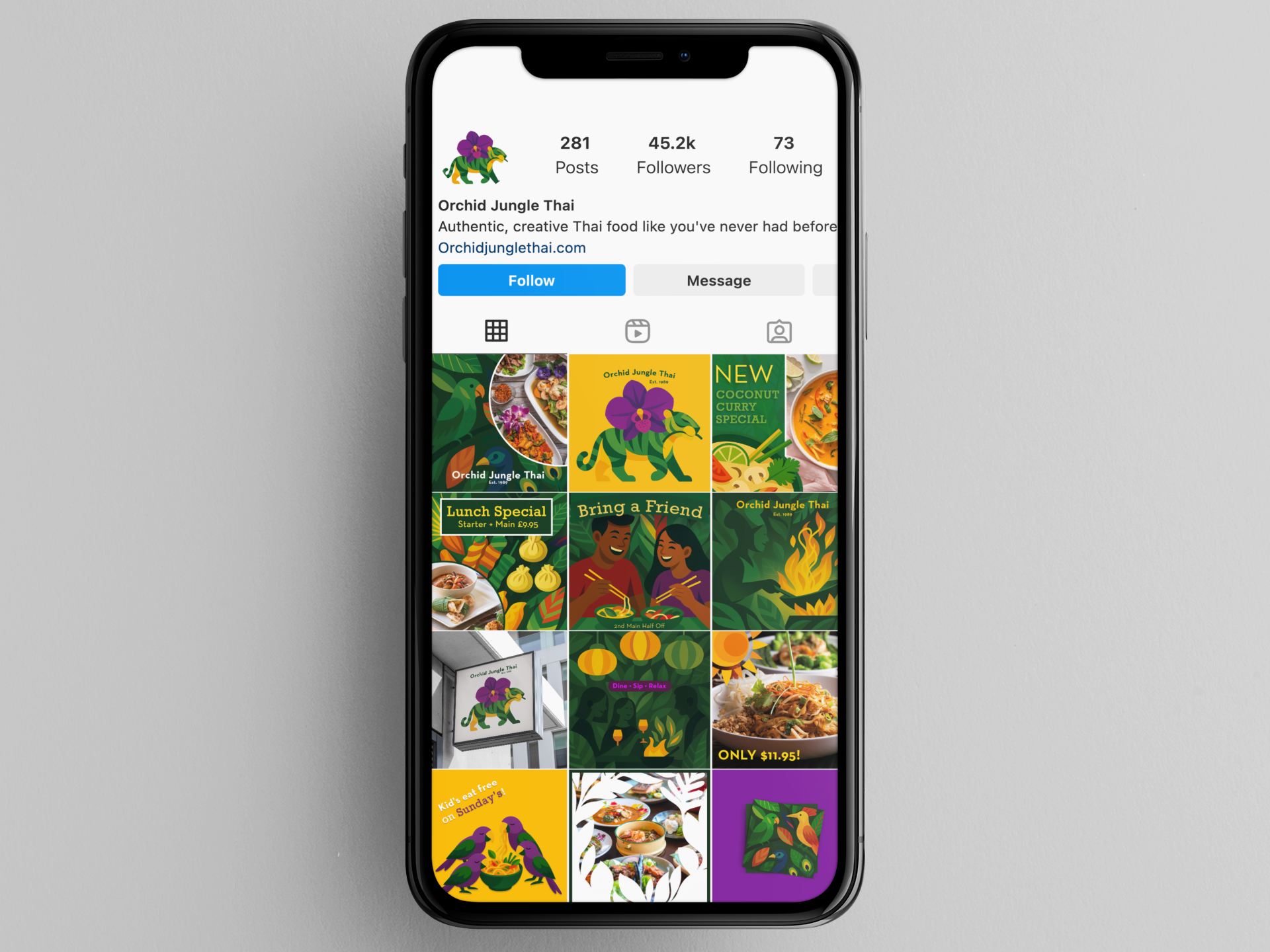 For Orchid Jungle Thai, my goal was to create a bold, engaging, and varied visual approach that would keep social media presence fresh and exciting while reinforcing brand identity. I developed a mix of illustrated elements, playful typography, and vibrant food photography to highlight both the personality of the restaurant and the richness of Thai cuisine. By combining dynamic illustrations, tropical motifs, and colorful layouts, I ensured each post stood out on its own while contributing to a consistent, memorable feed—demonstrating how design can turn simple promotions into an eye-catching and cohesive brand presence.